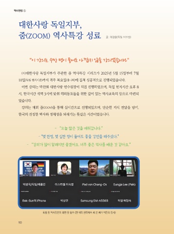 (사)대한사랑 독일지부가 주관한 줌 역사특강 시리즈가 2025년 5월 15일부터 7월