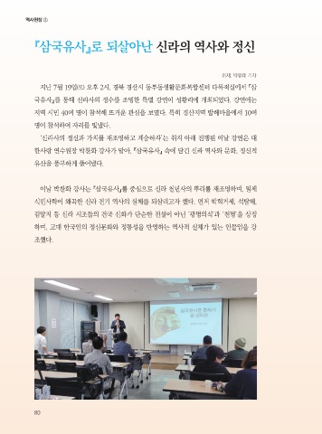 이날 박찬화 강사는 『삼국유사』를 중심으로 신라 천년사의 뿌리를 재조명하며, 일제