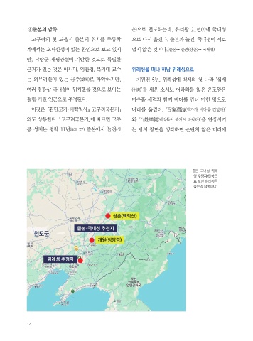 고구려의 첫 도읍지 졸본의 위치를 주류학 으로 다시 옮겼다. 졸본과 눌견, 국내성이 서로