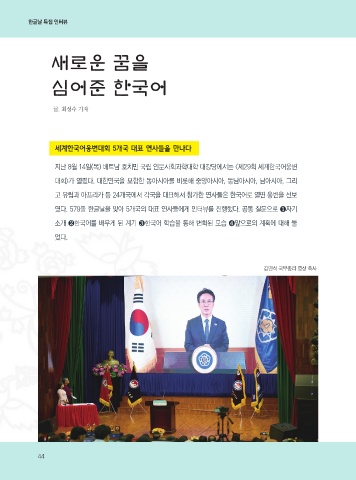 였다. 579돌 한글날을 맞아 5개국의 대표 연사들에게 인터뷰를 진행했다. 공통 질문으로 ❶자기