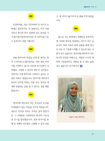 처음 한국어에 관심을 갖게 된 계기는 한 용기와 열정을 바탕으로, 저뿐만 아니라 제