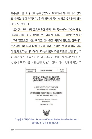 미 상원 보고서 China’s impact on Korean Peninsula unification and
