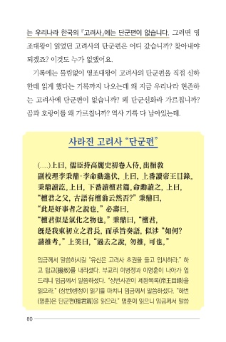 기록에는 틀림없이 영조대왕이 고려사의 단군편을 직접 신하