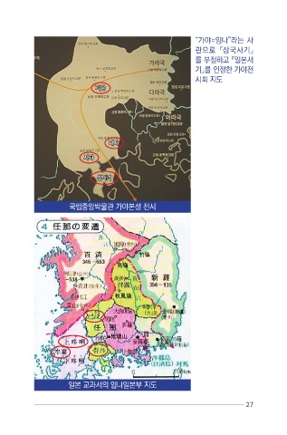 “가야=임나”라는 사 관으로 『삼국사기』 를 부정하고 『일본서 기』를 인정한 가야전 시회 지도 기문 대사 사타 상다리 국립중앙박물관 가야본성 전시 일본 교과서의 임나일본부 지도 27 어서와 1강.indd 27 2021-10-18 13:17:18