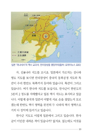 일본 ‘마나비샤’의 역사 교과서. 만리장성을 평양까지(출처: 오마이뉴스 포토)