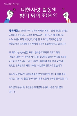 여러분의 정성스런 후원금은 역사문화 운동에 소중한 밑거름이