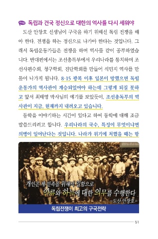 래서 독립운동가들은 전쟁을 하며 역사를 같이 공부하였습