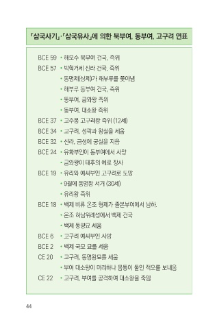 『삼국사기』·『삼국유사』에 의한 북부여, 동부여, 고구려 연표