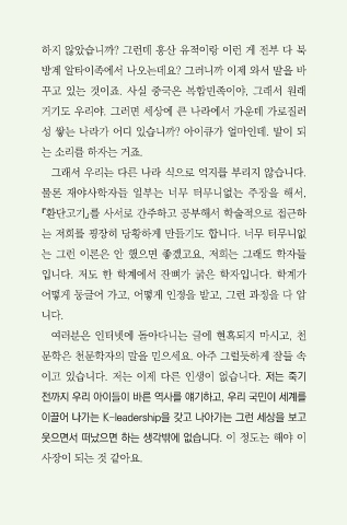 전까지 우리 아이들이 바른 역사를 얘기하고, 우리 국민이 세계를