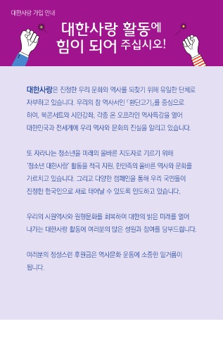 여러분의 정성스런 후원금은 역사문화 운동에 소중한 밑거름이