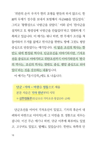 반도 내에 한정된 역사다. 단군조선을 이야기하지만, 기자조