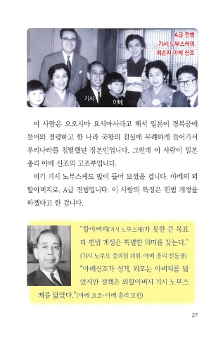 할아버지로, A급 전범입니다. 이 사람의 특징은 헌법 개정을