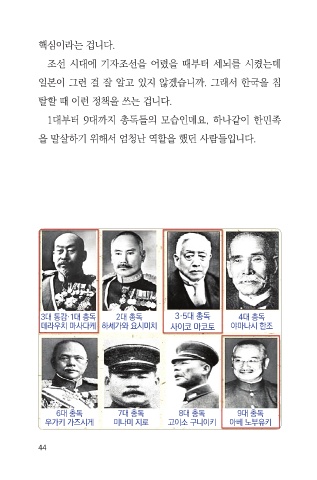 1대부터 9대까지 총독들의 모습인데요, 하나같이 한민족