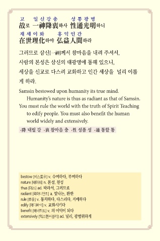 사람의 본성은 삼신의 대광명에 통해 있으니,