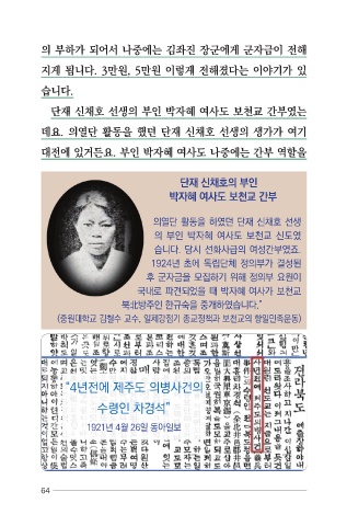 단재 신채호 선생의 부인 박자혜 여사도 보천교 간부였는