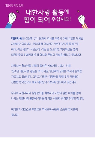 여러분의 정성스런 후원금은 역사문화 운동에 소중한 밑거름이