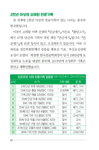 단군조선 시대 천문기록 일람표 (세기=단군세기, 고사=단기고사)