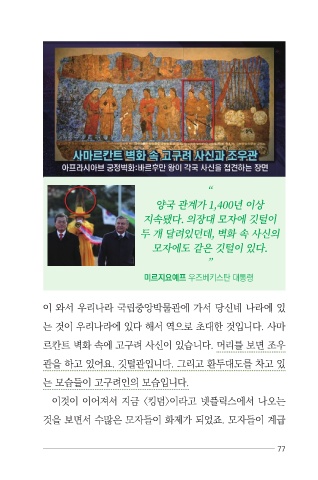 르칸트 벽화 속에 고구려 사신이 있습니다. 머리를 보면 조우