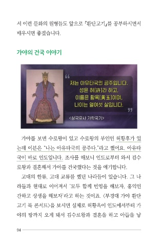 로왕과 결혼해서 가야를 건국했다는 것을 얘기합니다.