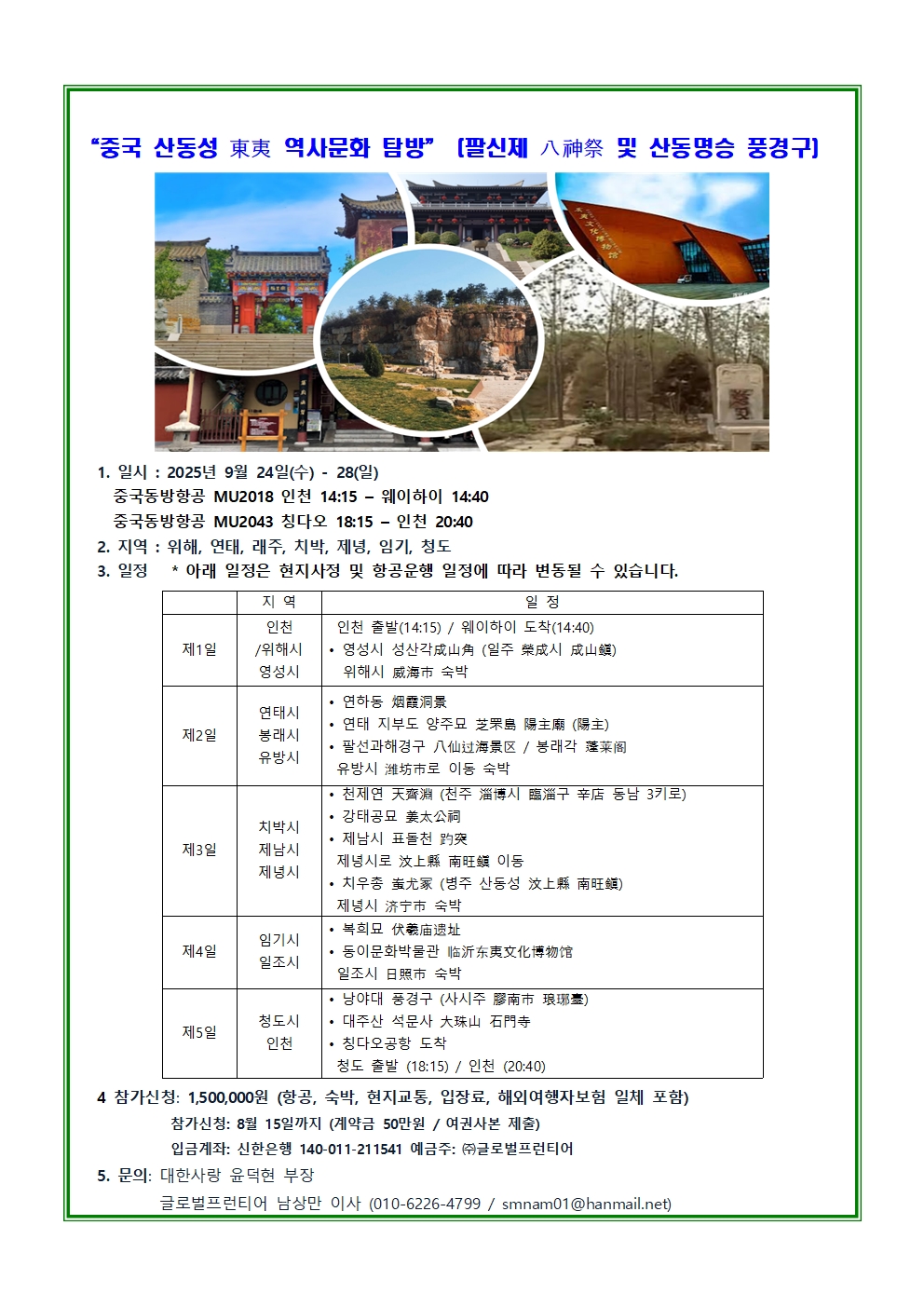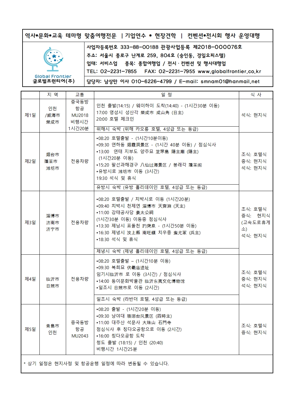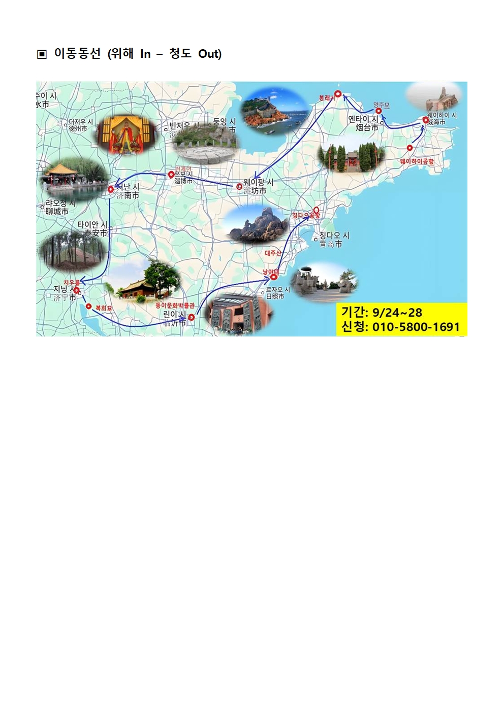 대한사랑 2차 산동성 문화 역사 답사 모집