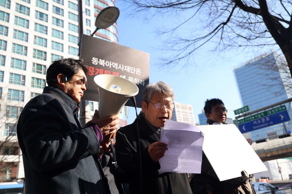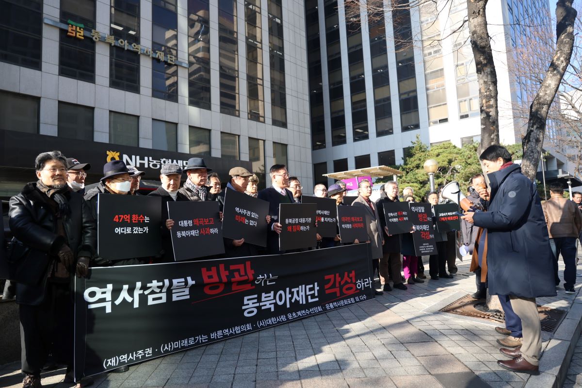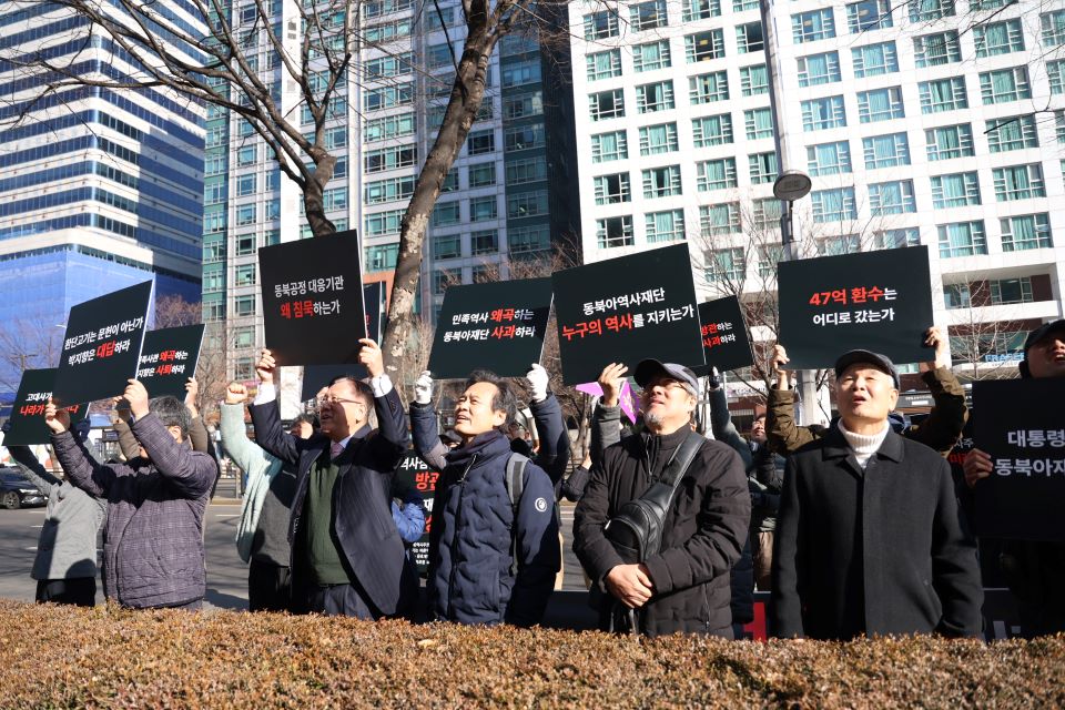 참가자들은 성명서를 통해 “동북아역사재단은 중국의 동북공정에 제대로 대응하지 못했을 뿐 아니라, 일본의 역사침탈 앞에서도 사실상 침묵으로 일관해 왔다”며 “이는 무능의 문제가 아니라 구조적 방기이자 직무유기”라고 주장했다.
